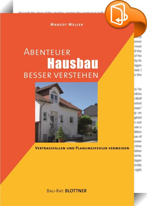 Abenteuer Hausbau besser verstehen, Vertragsfallen und Planungsfehler vermeiden, Blottner, Margot Weller,Haus: Wartung und Instandhaltung, Renovierung, Bau,Lifestyle, Hobbys und Freizeit, Hausbau, Vertrag, Planung, Planungsfehler, Vertragsfallen, Einfamilienhaus, Neubau, Architekt, Bauträger, Bauunternehmer, Baulaie, Bauherren, Wohnen, Baufinanzierung, Bauvertrag, Gewerke, Bauabnahme, Kostenfalle, Sonderwünsche,, Bau-Rat:, Germany, de-DEhttp://www.blottner.deHausbau, Vertrag, Planung, Planungsfehler, Vertragsfallen, Einfamilienhaus, Neubau, Architekt, Bauträger, Bauunternehmer, Baulaie, Bauherren, Wohnen, Baufinanzierung, Bauvertrag, Gewerke, Bauabnahme, Kostenfalle, Sonderwünsche, [BLURB],[CITY],,books, ebooks, biblet, Book2look