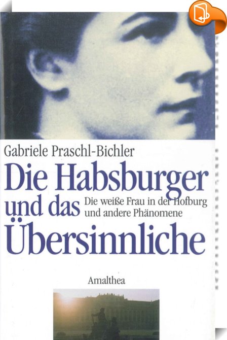 Die Habsburger und das Übersinnliche, Die weiße Frau in der Hofburg und andere Phänomene. Mit einem Beitrag des Parapsychologen Peter Mulacz und 69 Abbildungen., Amalthea Signum Verlag, Gabriele Praschl-Bichler,Parapsychologische Forschung,Psychologie, Astrologie, Exorzismus, Franz Ferdinand, Habsburger, Johann Salvator, Kaiser Franz Joseph, Kaiserin Elisabeth, Kronprinz Rudolf, Lustschloss Hetzendorf, Maria Theresia, Nostradamus, Parapsychologie, Phänomene, Prophezeiung, Schloß Schönau, Schloss Schönbrunn, Sissi, Spuk, Übersinnliches, Visionen,, , Germany, de-DEhttps://www.book2look.comAstrologie, Exorzismus, Franz Ferdinand, Habsburger, Johann Salvator, Kaiser Franz Joseph, Kaiserin Elisabeth, Kronprinz Rudolf, Lustschloss Hetzendorf, Maria Theresia, Nostradamus, Parapsychologie, Phänomene, Prophezeiung, Schloß Schönau, Schloss Schönbrunn, Sissi, Spuk, Übersinnliches, Visionen, [BLURB],[CITY],,books, ebooks, biblet, Book2look