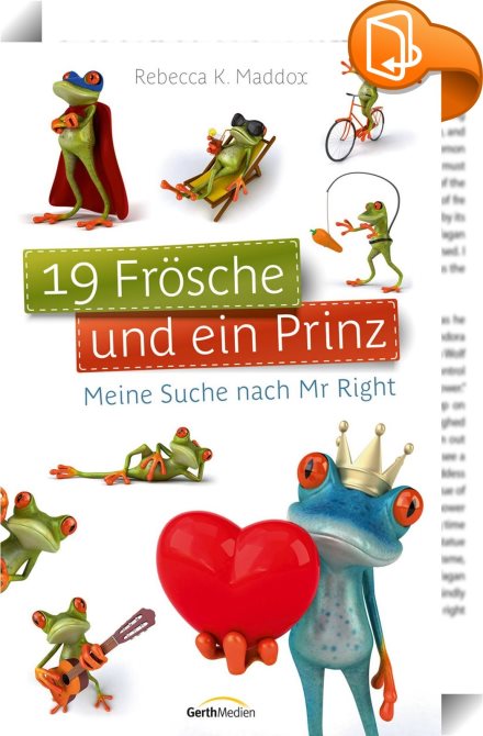 19 Frösche und ein Prinz, Meine Suche nach Mr. Right., Gerth Medien, Rebecca K. Maddox,Ratgeber Beziehungen und Familien: Themen und Fragen,Familie und Gesundheit, Beziehung, Christentum, Date, Dating, Experiment, Frauen, Glaube, Humor, Liebe, Lifestyle, Mr. Right, Partnerschaft, Partnersuche, Ratgeber, Religion, Sachbuch, Selbstversuch, Single, Spaß,, , Germany, de-DEhttps://www.book2look.comBeziehung, Christentum, Date, Dating, Experiment, Frauen, Glaube, Humor, Liebe, Lifestyle, Mr. Right, Partnerschaft, Partnersuche, Ratgeber, Religion, Sachbuch, Selbstversuch, Single, Spaß, [BLURB],[CITY],,books, ebooks, biblet, Book2look