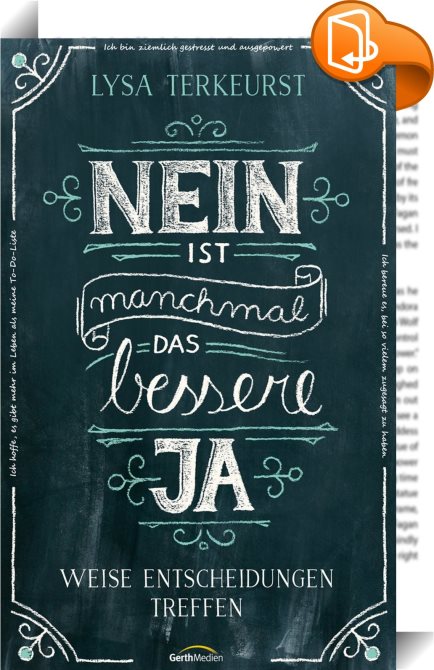 Nein ist manchmal das bessere Ja, Weise Entscheidungen treffen., Gerth Medien, Lysa TerKeurst,Lebenshilfe, Persönlichkeitsentwicklung und praktische Tipps,Gesundheit, Beziehungen und Persönlichkeitsentwicklung, Nein sagen lernen, Selbsthilfe, Stress, Zeitmanagement,, , Germany, de-DEhttps://www.book2look.comNein sagen lernen, Selbsthilfe, Stress, Zeitmanagement, [BLURB],[CITY],,books, ebooks, biblet, Book2look
