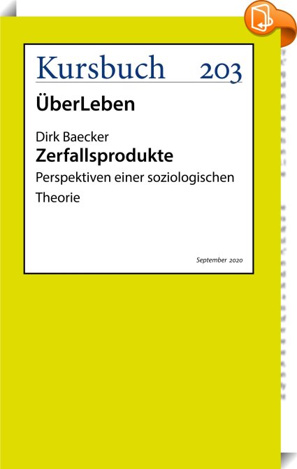 Zerfallsprodukte, Perspektiven einer soziologischen Theorie, Kursbuch, Dirk Baecker,Gesellschaft und Sozialwissenschaften,, ,, , Germany, de-DEhttps://www.book2look.com, [BLURB],[CITY],,books, ebooks, biblet, Book2look