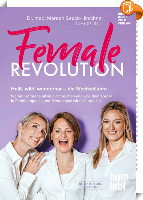 Female Revolution, Heiß, wild, wunderbar – die Wechseljahre. Warum Hormone allein nicht reichen und was dein Körper in Perimenopause und Menopause wirklich braucht, Becker Joest Volk Verlag, Dr. med. Mareen Seeck-Hirschner,Menopause,Frauengesundheit, Wechseljahre,Menopause,Gesundheit,Schlafstörungen,Haarausfall,Achtsamkeit,Perimenopause,Hitzewallungen,Nachtschweiß,Brain Fog,Östrogen,Trockene Haut,Hormone,Stimmungsschwankungen,Lebensfreude,Wechseljahre Beschwerden,Klimakterium,Gelassenheit,Stressmanagement,Selbstfindung,Ernährung in den Wechseljahren,Frauengesundheit,Wechseljahre Ratgeber,Perimenopause Tipps,Menopause Ratgeber,Frauengesundheit ab 40,Wechseljahre verstehen,mentale Gesundheit Wechseljahre,wie gehe ich mit den Wechseljahren um,wie überwindet man Brain Fog,wie reduziert man Erschöpfung in Menopause,was tun bei Schlafproblemen Wechseljahre,Tipps gegen Hitzewallungen ohne Hormone,, , Germany, de-DEhttp://www.bjvv.deWechseljahre,Menopause,Gesundheit,Schlafstörungen,Haarausfall,Achtsamkeit,Perimenopause,Hitzewallungen,Nachtschweiß,Brain Fog,Östrogen,Trockene Haut,Hormone,Stimmungsschwankungen,Lebensfreude,Wechseljahre Beschwerden,Klimakterium,Gelassenheit,Stressmanagement,Selbstfindung,Ernährung in den Wechseljahren,Frauengesundheit,Wechseljahre Ratgeber,Perimenopause Tipps,Menopause Ratgeber,Frauengesundheit ab 40,Wechseljahre verstehen,mentale Gesundheit Wechseljahre,wie gehe ich mit den Wechseljahren um,wie überwindet man Brain Fog,wie reduziert man Erschöpfung in Menopause,was tun bei Schlafproblemen Wechseljahre,Tipps gegen Hitzewallungen ohne Hormone, [BLURB],[CITY],,books, ebooks, biblet, Book2look