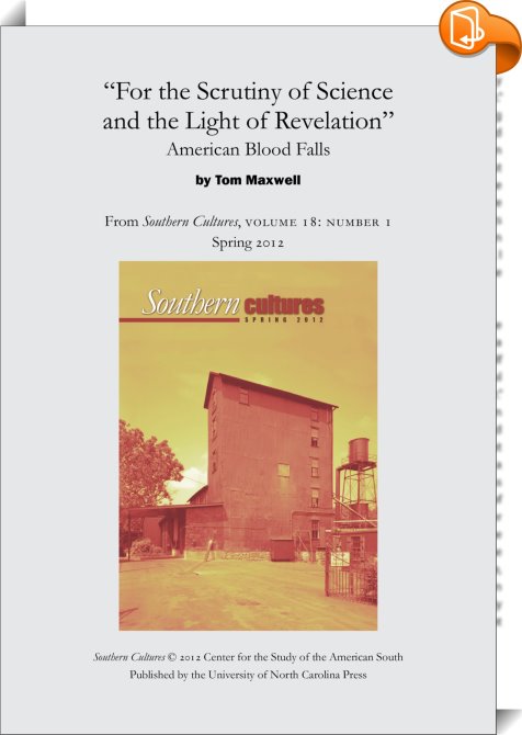 "For the Scrutiny of Science and the Light of Revelation": American Blood Falls, An article from Southern Cultures 18:1, Spring 2012, UNC Center for the Study of the American South, Tom Maxwell,History of the Americas,History, ,, , United States, en-UShttps://uncpress.org, [BLURB],[CITY],NC,books, ebooks, biblet, Book2look