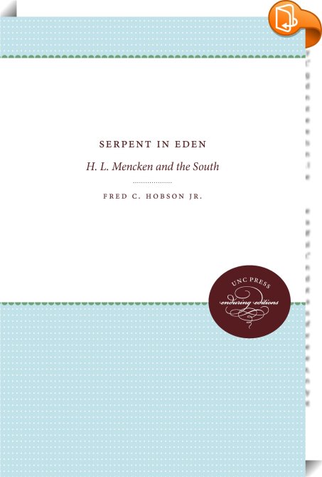 Serpent in Eden, H. L. Mencken and the South, The University of North Carolina Press, Fred C. Hobson Jr.,Biography: general,Biography and non-fiction prose, ,, , United States, en-UShttps://uncpress.org, [BLURB],[CITY],NC,books, ebooks, biblet, Book2look