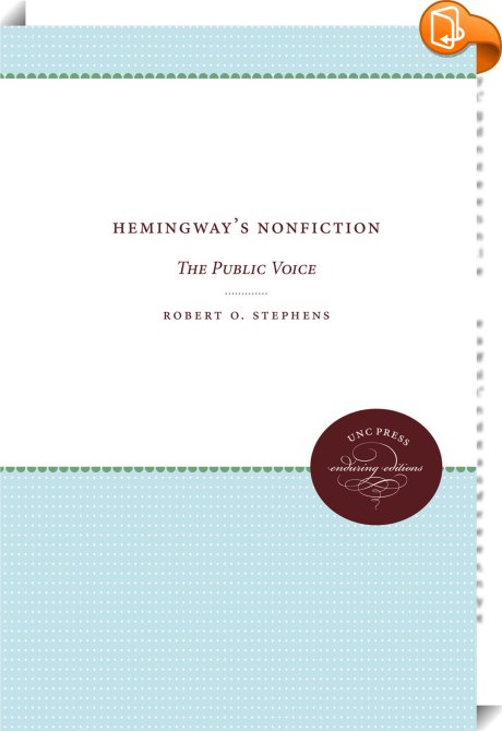 Hemingway's Nonfiction, The Public Voice, The University of North Carolina Press, Robert O. Stephens,Literature: history and criticism,Biography, Literature and Literary studies, ,, , United States, en-UShttps://uncpress.org, [BLURB],[CITY],NC,books, ebooks, biblet, Book2look