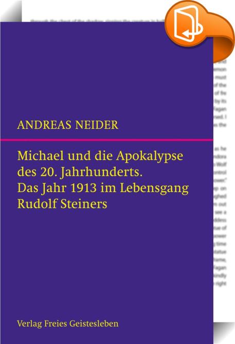 Michael und die Apokalypse des 20. Jahrhunderts, Das Jahr 1913 im Lebensgang Rudolf Steiners, Verlag Freies Geistesleben, Andreas Neider,Theosophie und Anthroposophie,Eklektische und esoterische Religionen und Glaubenslehren, Michael, Apokalypse, 20. Jahrhundert, 1913, Rudolf Steiner,, , Germany, de-DEhttp://www.geistesleben.comMichael, Apokalypse, 20. Jahrhundert, 1913, Rudolf Steiner, [BLURB],[CITY],,books, ebooks, biblet, Book2look