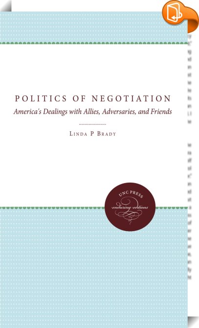 The Politics of Negotiation, America's Dealings with Allies, Adversaries, and Friends, The University of North Carolina Press, Linda P. Brady,International relations,Politics and government, negotiations; 1970s; 1980s; security talks,, , United States, en-UShttps://uncpress.orgnegotiations; 1970s; 1980s; security talks, [BLURB],[CITY],NC,books, ebooks, biblet, Book2look