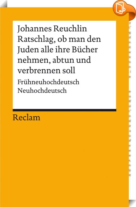 Ratschlag, ob man den Juden alle ihre Bücher nehmen, abtun und verbrennen soll. Frühneuhochdeutsch/Neuhochdeutsch, Reuchlin, Johannes – 14248, Reclam, Philipp, jun. GmbH, Verlag, Johannes Reuchlin,Religiöse Intoleranz, Verfolgung und Konflikte,Religiöse Fragen und Debatten, Analyse, Augenspiegel Deutsch, Augenspiegel Frühneuhochdeutsch Neuhochdeutsch, Augenspiegel Original, Augenspiegel Reuchlin, Augenspiel Frühneuhochdeutsch, Augenspiel Neuhochdeutsch, Augenspiel Übersetzung, Basiswissen, Bücherverbrennung Mittelalter, Darstellung, deutsche Geschichte, Deutschland, einführung, Epochen, Erinnerungen, Erläuterungen, Europa, europäische Geschichte, europäische Völker, gelb, gelbe bücher, Geschichte, Geschichte Deutschlands, Geschichte Europas, Geschichtsschreibung, grundlagen, historisch, Humanistische Schriften, Jahrhunderte, Johannes Reuchlin Antijudaismus, Johannes Reuchlin Antisemitismus, Johannes Reuchlin Bücherverbrennung, Johannes Reuchlin Dunkelmännerbriefe, Johannes Reuchlin gegen Verbrennung, Johannes Reuchlin Gutachten, Johannes Reuchlin Humanismus, Johannes Reuchlin Juden, Johannes Reuchlin Judenbücherstreit, Johannes Reuchlin Ratschlag, Johannes Reuchlin Reuchlinkonflikt, Johannes Reuchlin Stellungnahme, Johannes Reuchlin Toleranz, Judenbücherstreit, lektüre, literarisch, Nachkriegszeit, reclam hefte, reclams universal bibliothek, Staaten, studenten, studentinnen, studierende, universalbibliothek, universität, Verbrennt nicht was ihr nicht kennt, Vergangenheit, vorlesungen, wissen, wissenschaft, wissenschaftliche Abhandlung,, Reclams Universal-Bibliothek, Germany, de-DEhttp://www.reclam.deAnalyse, Augenspiegel Deutsch, Augenspiegel Frühneuhochdeutsch Neuhochdeutsch, Augenspiegel Original, Augenspiegel Reuchlin, Augenspiel Frühneuhochdeutsch, Augenspiel Neuhochdeutsch, Augenspiel Übersetzung, Basiswissen, Bücherverbrennung Mittelalter, Darstellung, deutsche Geschichte, Deutschland, einführung, Epochen, Erinnerungen, Erläuterungen, Europa, europäische Geschichte, europäische Völker, gelb, gelbe bücher, Geschichte, Geschichte Deutschlands, Geschichte Europas, Geschichtsschreibung, grundlagen, historisch, Humanistische Schriften, Jahrhunderte, Johannes Reuchlin Antijudaismus, Johannes Reuchlin Antisemitismus, Johannes Reuchlin Bücherverbrennung, Johannes Reuchlin Dunkelmännerbriefe, Johannes Reuchlin gegen Verbrennung, Johannes Reuchlin Gutachten, Johannes Reuchlin Humanismus, Johannes Reuchlin Juden, Johannes Reuchlin Judenbücherstreit, Johannes Reuchlin Ratschlag, Johannes Reuchlin Reuchlinkonflikt, Johannes Reuchlin Stellungnahme, Johannes Reuchlin Toleranz, Judenbücherstreit, lektüre, literarisch, Nachkriegszeit, reclam hefte, reclams universal bibliothek, Staaten, studenten, studentinnen, studierende, universalbibliothek, universität, Verbrennt nicht was ihr nicht kennt, Vergangenheit, vorlesungen, wissen, wissenschaft, wissenschaftliche Abhandlung, [BLURB],[CITY],,books, ebooks, biblet, Book2look