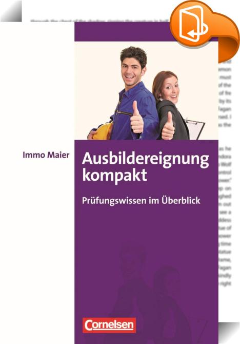 Ausbildereignung kompakt, Titelbez.-Untertitel: Prüfungswissen im Überblick, Cornelsen, Immo Maier,Schule und Lernen: Berufsausbildung,Unterrichtsmaterial, ,, , Germany, de-DEhttps://www.cornelsen.de/home, [BLURB],[CITY],,books, ebooks, biblet, Book2look