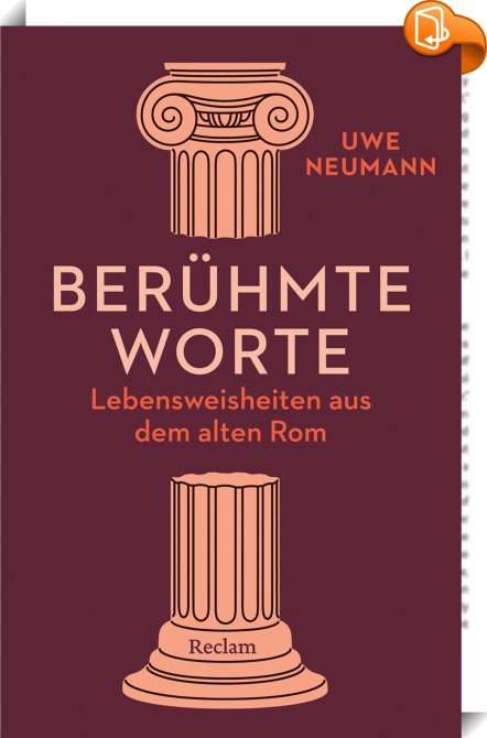 Berühmte Worte. Lebensweisheiten aus dem alten Rom, Lateinische Sentenzen – neu interpretiert, Reclam, Philipp, jun. GmbH, Verlag, Uwe Neumann,Zitate, Sprichwörter, Redensarten,Nachschlagewerke, Alea iacta est, Altes Rom, Amor vincit omnia, Antike Lebenshilfe, Antike Weisheiten, Antike Zitate, Carpe diem, Cäsar Zitate, Cicero Zitate, Divide et impera, Errare humanum est, Horaz Zitate, Juvenal Zitate, Klassische Bildung Zitate, Lateinische Inschriften, Lateinische Redewendungen und Sprüche, Lateinische Zitate, Lebensweisheiten, Marc Aurel Zitate, Memento mori, Mens sana in corpore sano, Motivationssprüche Latein, Ovid Zitate, Pecunia non olet, Philosophie, Philosophie der Stoiker Zitate, Plautus Zitate, Römische Geschichte Zitate, Römische Kultur und Zitate, Römische Sprichwörter, Römische Zitate, Römisches Recht Zitate, Seneca Zitate, Si vis pacem para bellum, Veni vidi vici, Verba volant scripta manent, Vergil Zitate, Zitate Latein Deutsch,, Reclams Universal-Bibliothek, Germany, de-DEhttp://www.reclam.deAlea iacta est, Altes Rom, Amor vincit omnia, Antike Lebenshilfe, Antike Weisheiten, Antike Zitate, Carpe diem, Cäsar Zitate, Cicero Zitate, Divide et impera, Errare humanum est, Horaz Zitate, Juvenal Zitate, Klassische Bildung Zitate, Lateinische Inschriften, Lateinische Redewendungen und Sprüche, Lateinische Zitate, Lebensweisheiten, Marc Aurel Zitate, Memento mori, Mens sana in corpore sano, Motivationssprüche Latein, Ovid Zitate, Pecunia non olet, Philosophie, Philosophie der Stoiker Zitate, Plautus Zitate, Römische Geschichte Zitate, Römische Kultur und Zitate, Römische Sprichwörter, Römische Zitate, Römisches Recht Zitate, Seneca Zitate, Si vis pacem para bellum, Veni vidi vici, Verba volant scripta manent, Vergil Zitate, Zitate Latein Deutsch, [BLURB],[CITY],,books, ebooks, biblet, Book2look