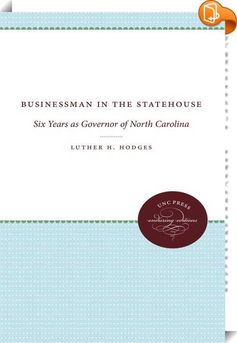 Businessman in the Statehouse, Six Years as Governor of North Carolina, The University of North Carolina Press, Luther H. Hodges Jr.,Biography: general,Biography and non-fiction prose, ,, , United States, en-UShttps://uncpress.org, [BLURB],[CITY],NC,books, ebooks, biblet, Book2look